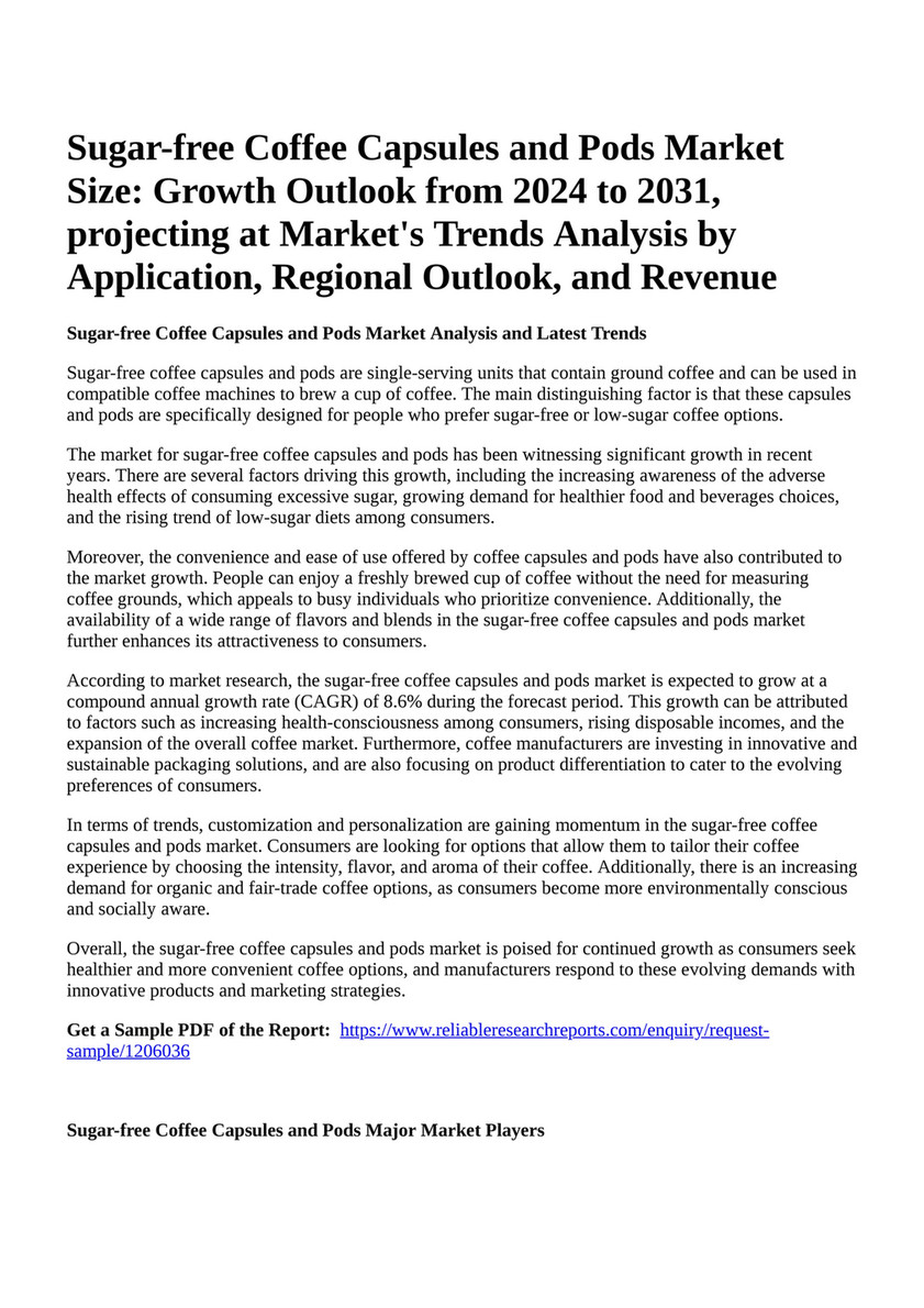 Source : www.facebook.comReportprime Sugar free Coffee Capsules and Pods Market Size